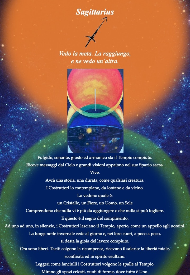 Per celebrare il corrente Segno Sagittarius (entrata il 21 novembre h. ital. 21.41) si presenta anche il frutto del lavoro compiuto su tale Qualità spaziale, a cura del gruppo astrologico ‘Aldebaran’: